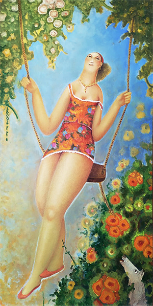 La obra de Elberto Pinto, gran pintor autodidacta, con extraordinaria capacidad, dotado de un gran Don en este lindo arte de la pintura, muestra el talento que expresa en sus obras, con sus características de sus personajes muy originales porque aflora una gestualidad muy particular del comportamiento humano con esa picardía en cada uno de sus rostros, y también de sus ropajes con una textura de buen gusto en sus diseños llenos de color y soltura que expresa en cada uno de sus vestidos femeninos.